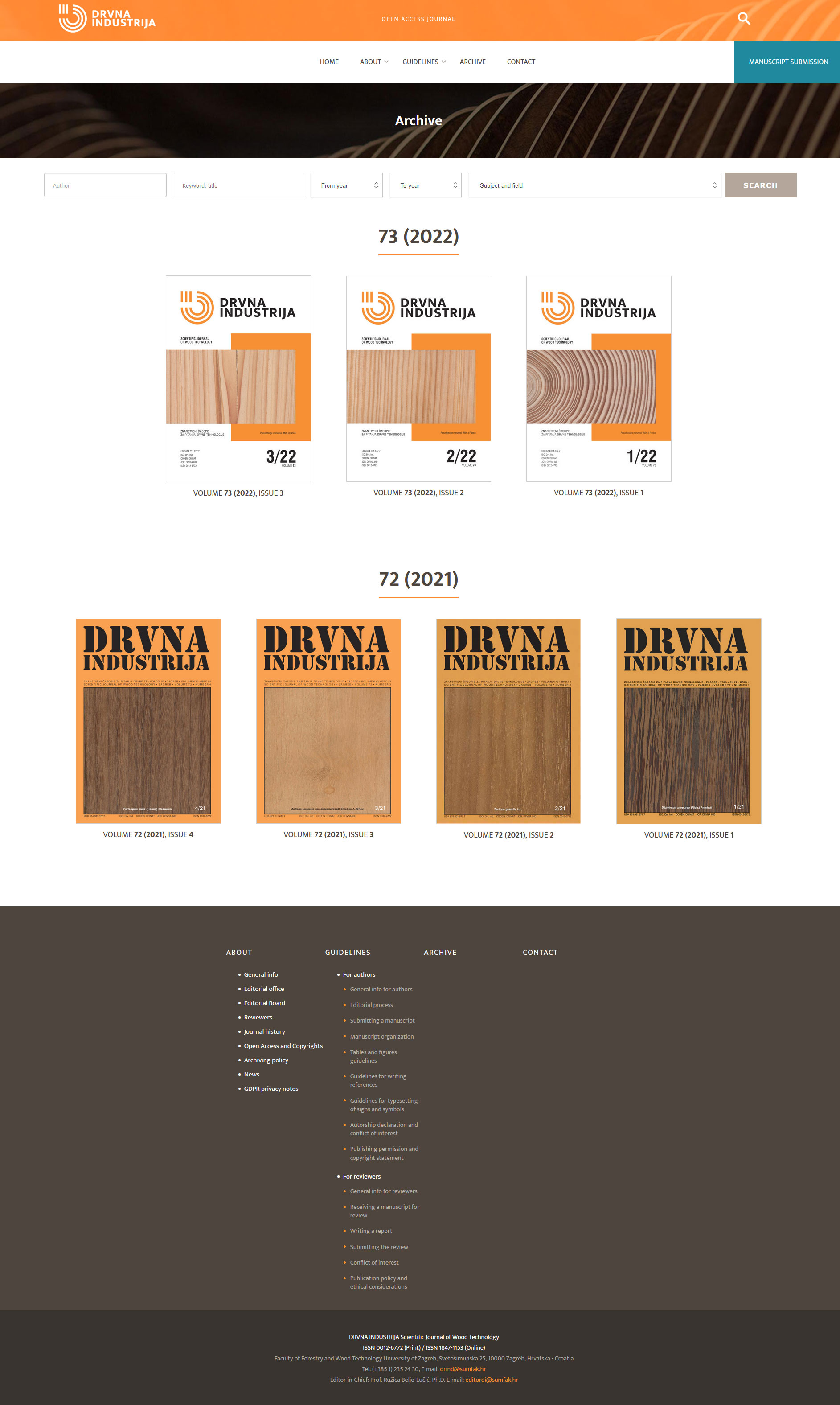 Časopis Drvna industrija je međunarodni recenzirani tromjesečni znanstveni časopis otvorenog pristupa za objavljivanje rezultata istraživanja o strukturi, svojstvima i zaštiti drva i drvnih materijala, primjeni drva i drvnih materijala, mehaničkoj obradi drva, hidrotermičkoj obradi i kemijskoj obradi drva, sve aspekti drvnih materijala i proizvoda od drva proizvodnja i promet drva i proizvoda od drva.