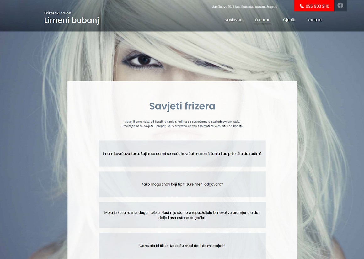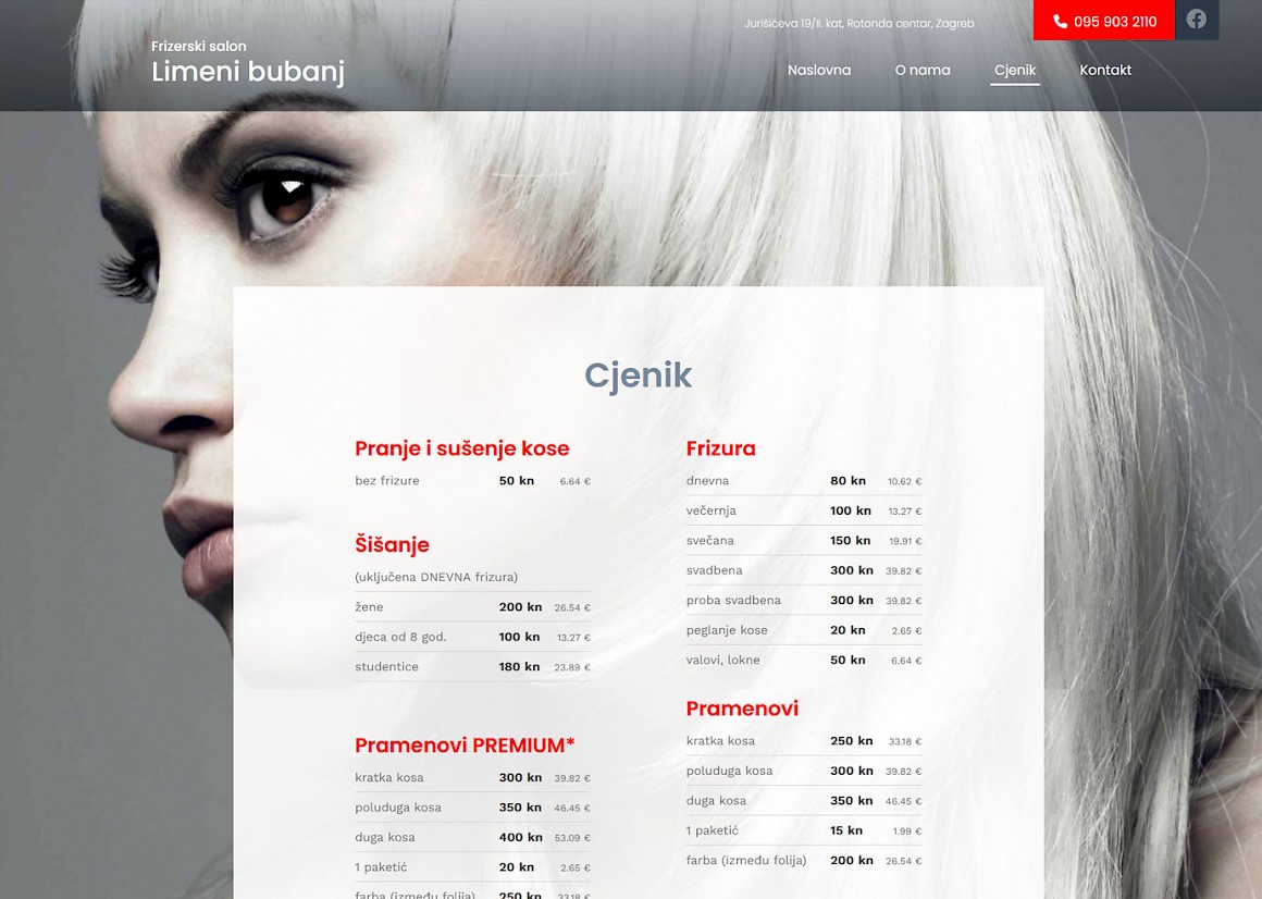 Frizerski salon LIMENI BUBANJ / dizajn i izrada web stranice